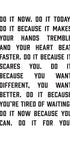 A bold black-and-white typography poster with the motivational message “Do it now. Do it today. Do it because it makes your hands tremble and your heart beat faster…” This powerful piece inspires courage, determination, and action, making it perfect for workspaces, studios, or any place where motivation is needed.