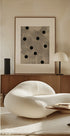 An elegant study in rhythm, Dot Symphony by THE MIUUS STUDIO scatters inky black circles across crisp white space like notes drifting on a silent score. Clusters gather, single dots wander, and gentle tension builds—creating calm movement, graphic balance, and a minimalist statement for serene rooms and quiet studios.