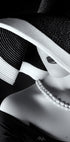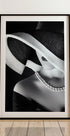 In this monochrome portrait by Ruslan Bolgov, a poised woman tilts beneath a wide-brim hat, eyes veiled in shadow while lipstick-bright lips and a string of pearls trace elegant curves. Clean lines, soft contrast, and a hush of mystery conjure timeless noir glamour. A refined focal point for fashion lovers and minimalist spaces alike.