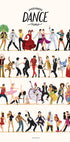 A vibrant and playful poster featuring iconic dance styles from around the world, from ballet to hip-hop, flamenco to breakdance. This colorful celebration of movement and culture is a must-have for dance lovers and pop culture fans alike. Perfect for studios, living rooms, or any space that deserves rhythm and joy.