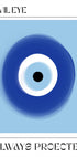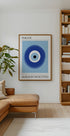 A bold and modern illustration of the traditional evil eye symbol, representing protection and warding off negative energy. The striking circular design in blue and white creates a powerful minimalist aesthetic with cultural significance.