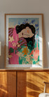 Expressive Figure Surrounded By Colorful Flowers Poster