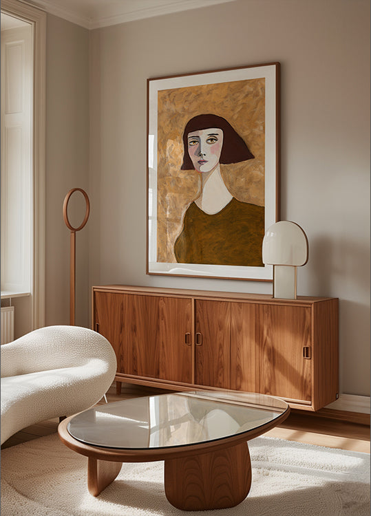 Expressive Portrait Lady with Bob Haircut green eyes Poster