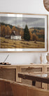 Let autumn settle in with a painterly vista of rust and gold treetops, deep greens, and rolling hills fading into a pale, misty sky. Layered brushwork and gentle depth evoke crisp air and quiet paths, bringing warmth, nostalgia, and a serene, grounded mood to living rooms, bedrooms, and cozy corners.