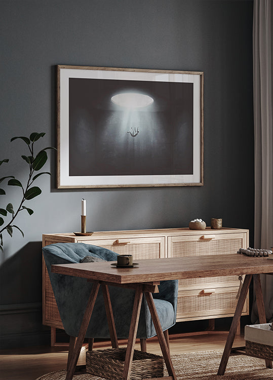 The *Falling from Hole of Light* poster is a striking surreal artwork that captures a moment of freefall into the unknown. Bathed in an ethereal glow, a lone figure descends from an illuminated opening, symbolizing transition, introspection, or an escape from darkness. This conceptual piece is perfect for those who appreciate deep, thought-provoking art. Ideal for modern interiors, meditation spaces, or as an eye-catching statement piece.