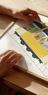 Hop aboard Lisbon’s iconic yellow tram as it rattles past sunlit hills, packed with a playful parade of jungle guests—giraffe, zebra, lion, tiger, monkeys and a cheeky crocodile. Carla Daly’s whimsical illustration blends city charm with safari fun, turning a classic ride into joyous storytelling. A cheerful tribute to Lisbon, Portugal.
