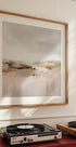 Alma's Farm View drifts across soft fields to a weathered farmhouse beneath a wide, pearl-grey sky. Painterly strokes and muted beige, mocha, and coastal blues evoke breeze, salt, and quiet distance. Rustic sheds, winding fences, and feathered clouds compose a serene rural scene with modern, airy calm.