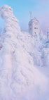 On Fichtelberg’s summit, a frost-crowned tower rises above snow-laden pines, veiled in a pale, high‑key glow. Soft pastel blues and whites wash the Erzgebirge scene with quiet stillness, while crisp lines and gentle haze meet in minimalist harmony. Photographed by Christoph Schaarschmidt. A calm winter landmark in Germany’s Ore Mountains.