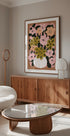 Floral Harmony by Treechild presents a painterly bouquet in a sleek vase, where blush pink petals and leafy greens melt into soft, impressionistic strokes. Earthy neutrals and pastel light create a calm, contemporary still life with a hint of vintage charm—gentle movement, quiet warmth, effortless elegance.