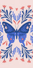 Angela Minca’s folk-art butterfly glides over a warm beige field, its symmetrical wings blossoming with tiny flowers, leafy branches, and heart motifs. Soft blues and coral tones mingle in playful patterns, bringing a gentle, springtime charm that suits nurseries, cozy corners, and creative spaces. Beautiful.
