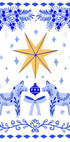 Celebrate the season with Folk Winter Star by artist Aliya Putrus: a charming Scandi-inspired scene where a radiant star anchors playful snowflakes, berries, and a ribboned bow around a traditional Dala horse. Warm blues, whites, and mustard yellows bring festive cheer to kids' rooms and cozy holiday corners.