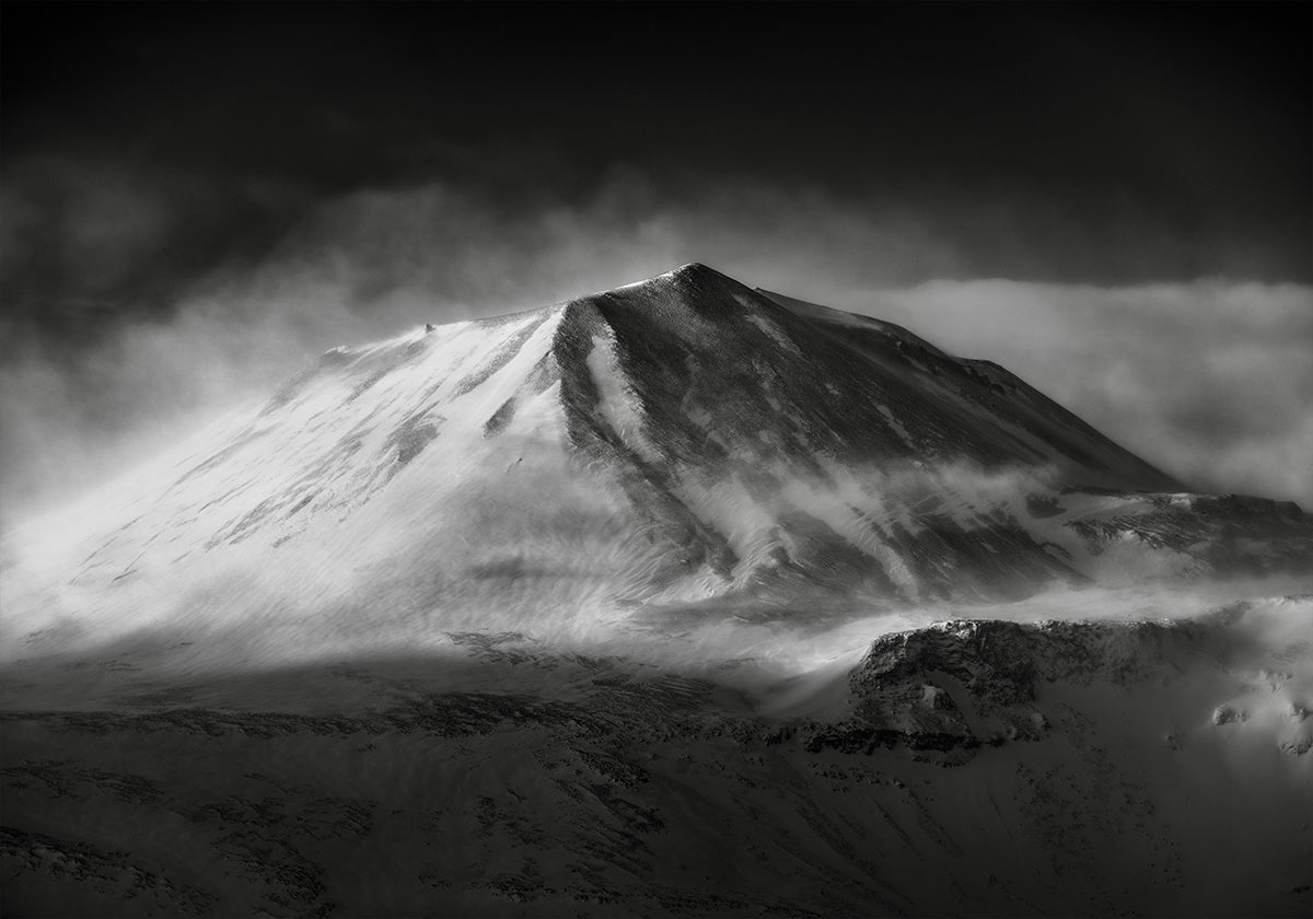Robert Bolton’s Forbidding captures a stark alpine summit carved by ice and wind. Sheer ridgelines rise into a pale winter sky, snowfields falling away into shadow. Crisp textures and a cool, restrained palette convey altitude, silence, and awe—an arresting portrait of mountain power and solitude. Profound.