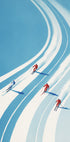 Four Skiers by Andreas Magnusson captures the exhilaration of alpine motion: four figures sweep across a sunlit slope, carving crisp lines through fresh powder. Bold, graphic shapes and cool winter tones evoke speed, balance and freedom—an energising snapshot of mountain life and the joy of skiing. Today.