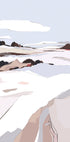 Frosty View l by Nikita Jariwala captures a hush of winter calm: a frozen lake stretches toward distant, jagged peaks, while soft dunes and rocks fade into misty light. Cool blues and earthy browns blend in a minimalist, digital landscape that evokes silence, space, and crisp, breath-held stillness.