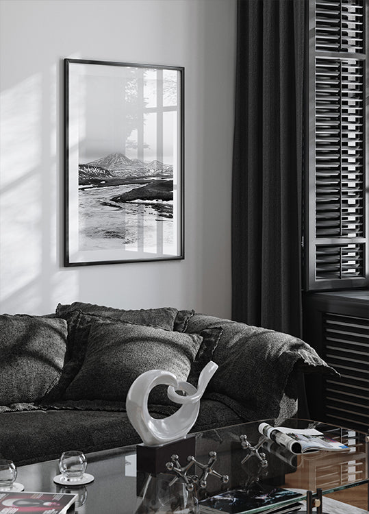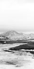 Capture Iceland's stark beauty in black and white: a frozen river cuts a silver path through snowy tundra beneath brooding skies and distant mountains. Lynann Colligan's composition balances quiet stillness and raw Nordic drama, a striking focal point for lovers of wilderness. Textures of ice and wind-brushed grass lead upstream.