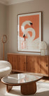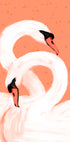 Two swans glide across a hushed riverbank, their curved necks almost shaping a heart as reeds sway and light shimmers on the water. Soft blush and peach tones wash the scene with calm, modern romance—an elegant focal point that invites serenity, balance, and a quiet sense of connection. Perfect for calm, romantic interiors.