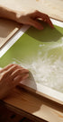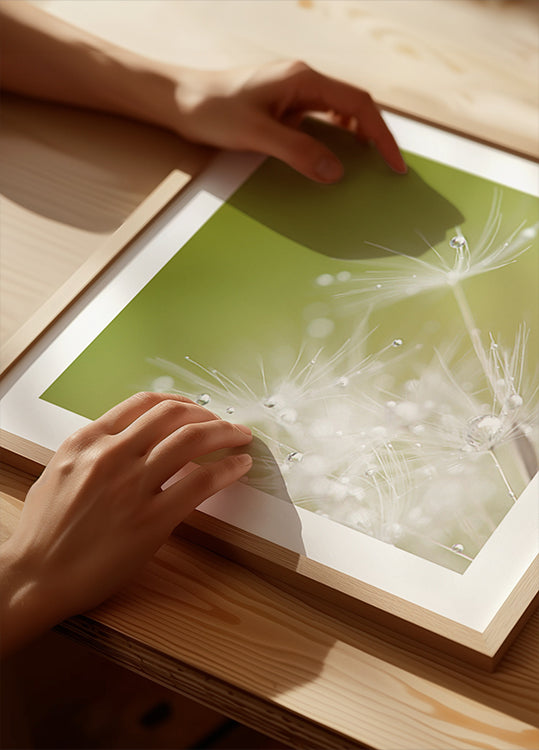 Green by artist Hilde Ghesquiere is a tranquil macro study: crystal-clear water droplets rest on a delicate white feather, glimmering like tiny pearls against a soft green haze. Minimal and poetic, this still life captures nature’s quiet drama with luminous grace and a soothing, contemplative mood that lingers.