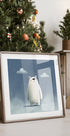 This charming print by Treechild captures a happy polar bear in a snow-kissed scene, rendered in soft whites and gentle greys. Minimal details and calm tones evoke a Nordic, storybook feel, adding warmth and whimsy to nurseries, living rooms, or winter-inspired galleries. A serene horizon invites a peaceful pause.