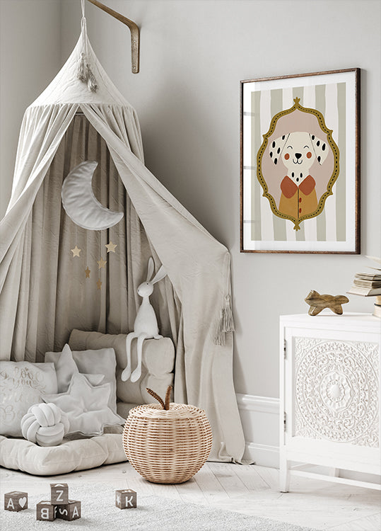 Say hello to pure tail-wag energy: a bright-eyed, smiling dog captured mid-grin against a clean, modern backdrop. This cheerful portrait by Treechild spotlights perky ears, a lively gaze, and irresistible charm, distilling canine joy into a bold, contemporary focal point for any room — from gallery walls to cozy corners.