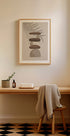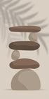 A tranquil and minimalist composition of carefully balanced zen stones in warm earthy tones, set against a soft beige background with abstract palm leaf shadows. This artwork radiates calm, mindfulness, and natural balance, making it an ideal addition to wellness spaces, yoga corners, or Scandinavian-style interiors.