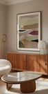 Drift into a serene abstract landscape of rolling forms and subtle texture. Hills by artist Dan Hobday layers dusk-plum, blush pink, and warm neutrals into soft, geometric contours, evoking quiet horizons and gentle movement. A modern focal point that brings calm structure to any room. Perfect for minimalist, contemporary spaces.