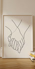 Minimalist and tender, this monochrome line drawing captures two hands meeting in a gentle clasp, tracing the quiet language of trust, romance, and friendship. Clean contours on a bright background create striking contrast, making it a versatile statement for bedrooms, galleries, or modern living spaces.