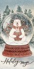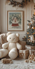 Step into a frosted holiday dream: a cozy bear and a curious bunny share a moment beside a gleaming travel globe, surrounded by twinkling pines and vintage hues of red, green, and teal. Holiday Magic by artist Olena Kovalova brings winter warmth, joy, and nostalgic wonder to your festive decor. A timeless scene to cherish all season.