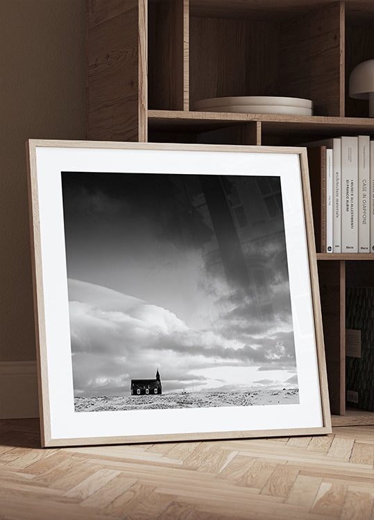 Against a high-key winter sky, the Búðir Black Church stands solitary on Iceland’s Snæfellsnes, its inky timbers cutting a bold silhouette across a snowbound plain. This monochrome photograph by Robert Bolton channels quiet faith, resilience, and meditative minimalism amid the Arctic hush. A lone horizon deepens the sense of sacred calm.
