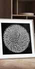 Immerse your space in Giorgio Toniolo’s Hypnosis: a monochrome field of concentric rings spiraling with Fibonacci rhythm, creating a serene yet electrifying optical illusion. Minimalist geometry, bold contrast, and perfect symmetry draw the eye inward, a meditative pulse for modern walls. Quietly commanding attention in any room.