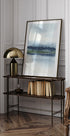 Lose yourself in a tranquil waterscape as dawn mist drifts across a glassy lake, soft clouds dissolving into a pale sky while shadowed trees and whispering grass frame the shore. Indigoforestii by artist Rachel Elise captures the hush of nature's in-between moments: serene, moody, and quietly luminous.