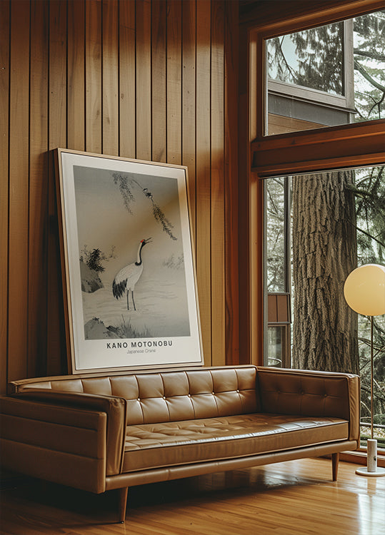 Japanese Crane Illustration Kano Motonobu Poster