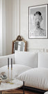 A stunning black-and-white portrait of a woman adorned with an intricate butterfly mask crafted from delicate lace. The mask's detailed patterns seamlessly blend with her lace dress, creating an ethereal and surreal aesthetic. The high contrast between the textures and the soft tones of her skin highlights her elegance and mystery, making this image a perfect representation of art, fashion, and fantasy.