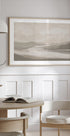 Awash with dawn light, Lake Sunrise by Dan Hobday captures a tranquil shoreline as the first sun breaks over still water. Soft clouds drift above layered brushstrokes of blue, sand, and blush, blending sky and lake into a calm, contemporary landscape that invites quiet reflection. Hints of coastal haze and gentle texture evoke morning tide.