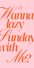 Lazy Sunday Rose Orange by Ohkimiko radiates weekend ease with bold, vintage-style typography spelling "Lazy Sunday" in rose and orange on a soft pastel pink field. Playful yet soothing, its retro palette and clean composition bring hygge warmth and romantic calm to bedrooms, living rooms, and cozy nooks.