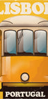 Lisbon basks in golden light as the iconic yellow tram climbs a cobbled hill between pastel facades, tiled balconies, and laundry-strung lanes. Terracotta rooftops cascade toward the Tagus under a clear sky, capturing the rhythm of Alfama and the romance of a timeless European city. A vintage travel vibe with bold typographic title and sunlit hues.