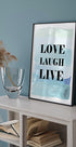 Awash in airy blues and gentle pastels, this minimalist typographic artwork by Martina spotlights the uplifting phrase “Live Joyfully Always.” A bright watercolor bloom softens the composition, channeling calm, optimism, and summer light—ideal for bedrooms, living rooms, and mindful work nooks. Let it remind you to savor everyday joy.