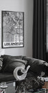 Bold black lettering on crisp white, threaded with fine lines that echo LA’s blocks, boulevards, and skyline geometry. Minimal yet retro-tinged, this monochrome typographic poster captures the city’s pace, grit, and sunlit sprawl—graphic, balanced, and unmistakably Los Angeles. Perfect for modern, Scandinavian-inspired walls.