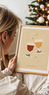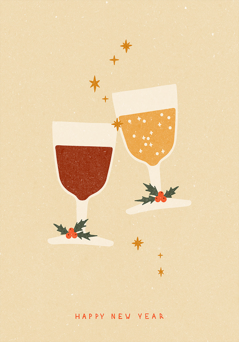 Raise a smile with this playful vintage-style illustration of two champagne flutes clinking in a joyful toast. Sparkles dance above the glasses as the festive mood builds—perfect for capturing holiday cheer and New Year wishes. A fun, witty centerpiece for bars, kitchens, and celebratory corners. Gift-ready for seasonal celebrations.