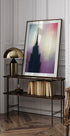 Janel Bragg’s Manhattan Abstract captures the Empire State Building rising through mist and morning light. Soft pinks, golds, and greys blur the skyline into a dreamy silhouette, balancing Art Deco strength with impressionist hush. A poetic ode to NYC’s urban pulse, twilight haze, and endless horizons.
