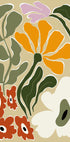 Sunlit petals pop from a terracotta vase in this mid-century still life by Miho Art Studio. Bold cut-out shapes in creamy oranges and lively greens create a playful, Matisse-inspired bloomscape. A retro wink with modern ease, it brightens kitchens, studios, and living corners. Think retro sunshine, leaves, and a vase that anchors the scene.