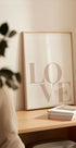 Say it simply, say it beautifully: LOVE. This minimalist typography print pairs bold, balanced letterforms with a calm, neutral backdrop for effortless modern style. Understated yet expressive, it brings warmth to bedrooms, living rooms, or gallery walls—celebrating connection with serene, contemporary charm.