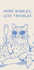 Sink into cheeky serenity with this blue minimalist line illustration by UK artist Tara Royle: a cool cat lounging in a bubble bath, wine in paw, while bold retro-modern type declares “More Bubbles, Less Troubles.” A playful, calming focal point for bathrooms and gallery walls with a wink of wit. Perfect for modern decor.