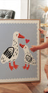 A sweet and heartwarming illustration of a mother duck and her duckling sharing a tender moment, highlighted by a small red heart. The soft pastel background and playful drawing style create a warm and loving vibe — perfect for kids' rooms, nurseries, or spaces that celebrate love and connection.