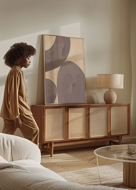 A soft interplay of taupe and beige tones creates a calming composition in this abstract poster. The organic shapes gently curve across the canvas, evoking a sense of harmony and natural rhythm. Perfect for minimalist or Japandi-inspired interiors, this design adds a modern touch without overwhelming the space.