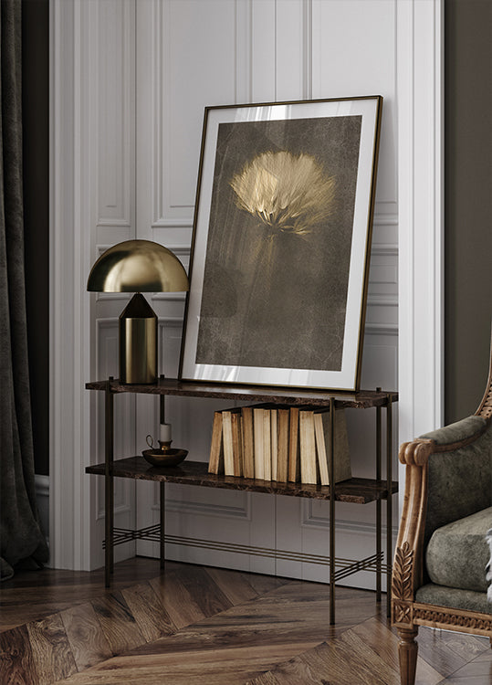 Mysterious Days by Cicek Kiral captures dandelions poised between bloom and seed, bathed in soft golden light. Feathery seeds drift over warm beige tones and rustic texture, evoking a quiet countryside hush. Minimalist detail and gentle shadows create a dreamy, cottagecore still life. A serene nod to nature.