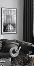 Step into a snow-lashed New York moment: a lone walker crosses the Brooklyn Bridge as steel cables carve bold geometric lines into the blizzard. This monochrome artwork by Martin Froyda captures hush and grit in equal measure—an iconic cityscape framed by vanishing perspective and winter’s bite in timeless black and white.
