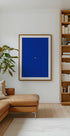 A striking minimalist photograph of a lone swimmer suspended in a vast, deep blue expanse. The dramatic contrast between the tiny human form and the endless color creates a sense of freedom, solitude, and wonder. Perfect for modern interiors, beach houses, or spaces that embrace bold simplicity.