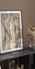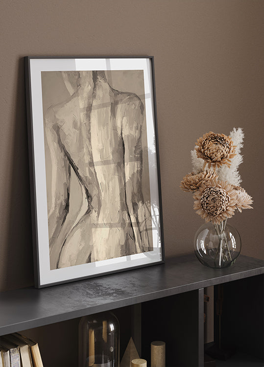 A stunning abstract painting of a female figure in neutral tones, capturing the delicate beauty of the human form through expressive brushstrokes and textured layers. The composition focuses on the back and shoulders, evoking a sense of grace, mystery, and timeless elegance. The subtle interplay of light and shadow adds depth to the artwork, making it an exquisite piece for modern and classic interiors alike.