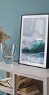 Ride the crest of serenity with this dynamic seascape: a towering ocean wave caught mid-surge, its glassy teal body curling into frothy white spray beneath a soft, hazy sky. The composition balances raw power and calm, inviting coastal light and motion into your space with timeless, maritime drama and depth.