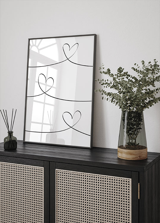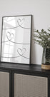A single, unbroken line sketches two faces leaning into a kiss, their contours merging into a subtle heart. Minimal and monochrome, the composition celebrates tenderness and negative space, balancing bold curves with delicate restraint. A poetic ode to love, perfect for modern, romantic interiors. Minimalist wall art to spark conversation.